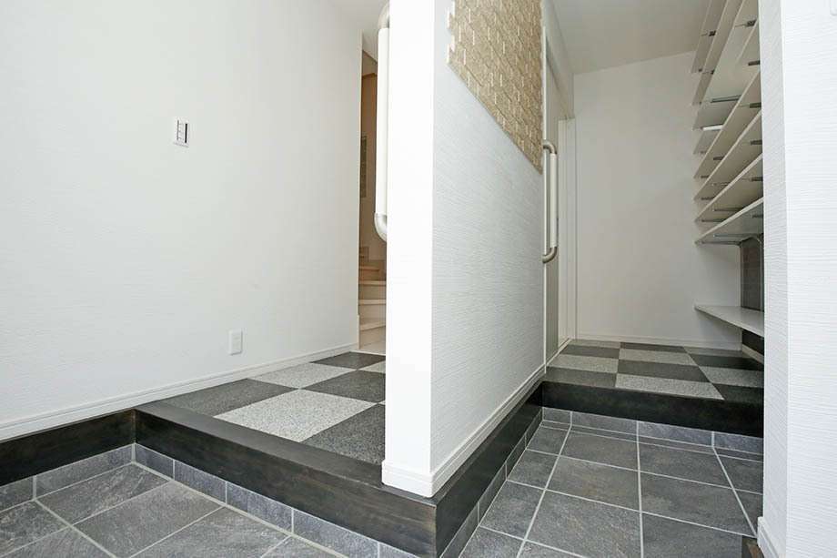 最後に、玄関にはウォークスルータイプのシューズクロークを採用。ここでもK様邸の各間取りの広さを有効に活用し、横並びでたくさんの靴がおける高さ調整可能な棚を多数設置。機能性を第一に追求した形を実現されています。