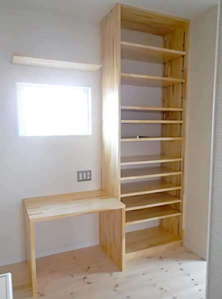 さらに、当社が造作でおつくりしたヒノキ材のダイニングテーブルをシンク台のとなりに設置。調理した料理や料理の材料の置き場に困ることのない広くて効率的なキッチン空間を実現しました。