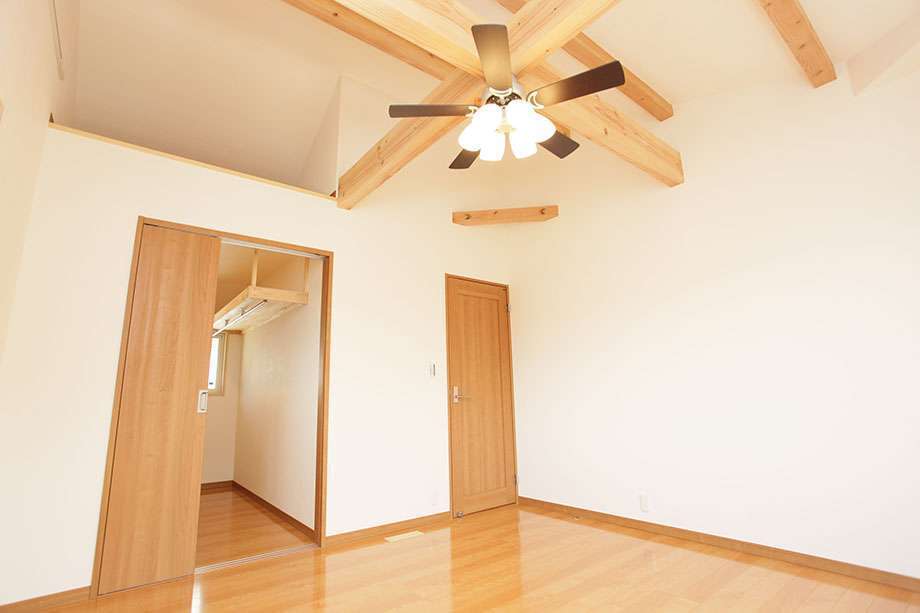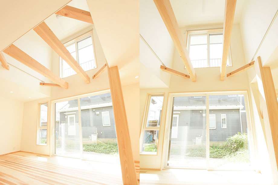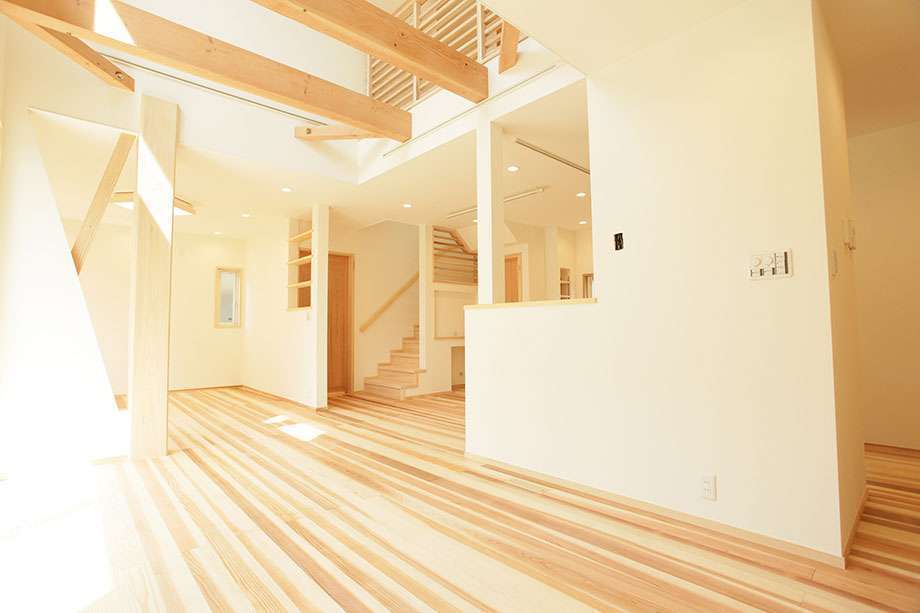 K様邸では、当社の御提案により、全館空調を採用させていただきました。全館空調とは、エアコンを一階の天井に設置し、エアコンから送風される冷暖の空気を一階・二階の床下に送り、床下にある送風口から空気を送風する仕組みです。各部屋の温度を一定に保つことでき、エアコンの台数も最小限にすることができるため、電気代を安くすますことができます。
