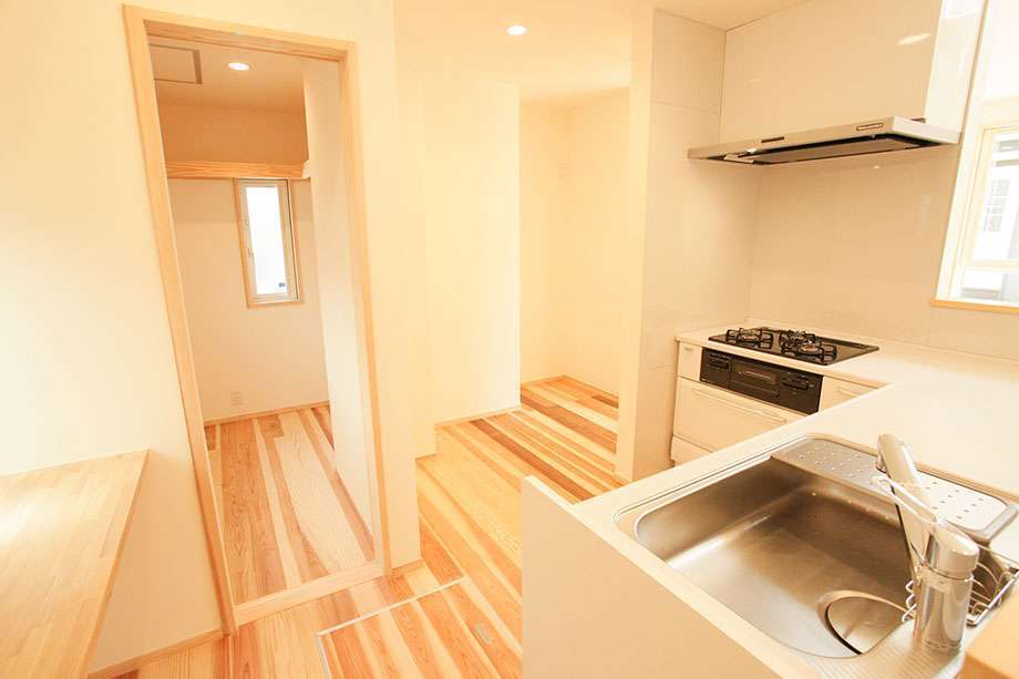 K様邸は、清瀬市の住宅街にあるお住まい。在来工法で、無垢材をふんだんに用いながらも、機能性・快適性を重視させたいという施主様のご要望に基づき、当社が設計・施工を請け負いました。間取りは4LDK。いたるところに無垢材を配し、木に抱かれた住環境を実現しながらも、現代の住宅には欠かせない防寒対策として、全館空調・樹脂サッシを取り入れ、家全体を冷暖房し、その空気を逃さない工夫を施してあります。
